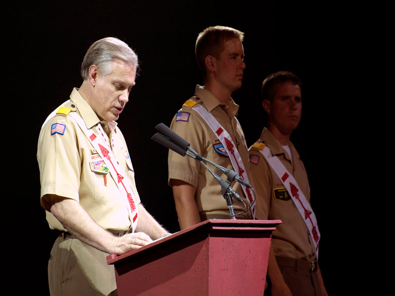 According to our Chief Scout Executive, Robert Mazzuca, his first NOAC is a "Hoot!" Mr. Mazzuca opened the Sunday night show and immediately got down to business. The more than 7,200 Arrowmen were fired-up by his no nonsense, take-no-prisoners tone. He stressed how over the next five years we are going to redefine the BSA to the American people. Our 3 million scouts, 1.5 million leaders and 50 million alumni must stand tall to proclaim the pride our rich heritage, relevant mission and values.