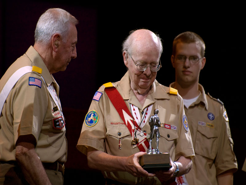Our National Chairman, Brad Hoddock, presented the 2009 Legacy of Service Award to Delbert W. "Del" Loder. The Legacy of Servant Leadership Lifetime Achievement Award was created by the National Order of the Arrow Committee in 2002 to recognize the Order's second and third generation "Founders"--Scouters who have built an enduring legacy to Scouting and the Order of the Arrow through a lifetime of cheerful service to others.